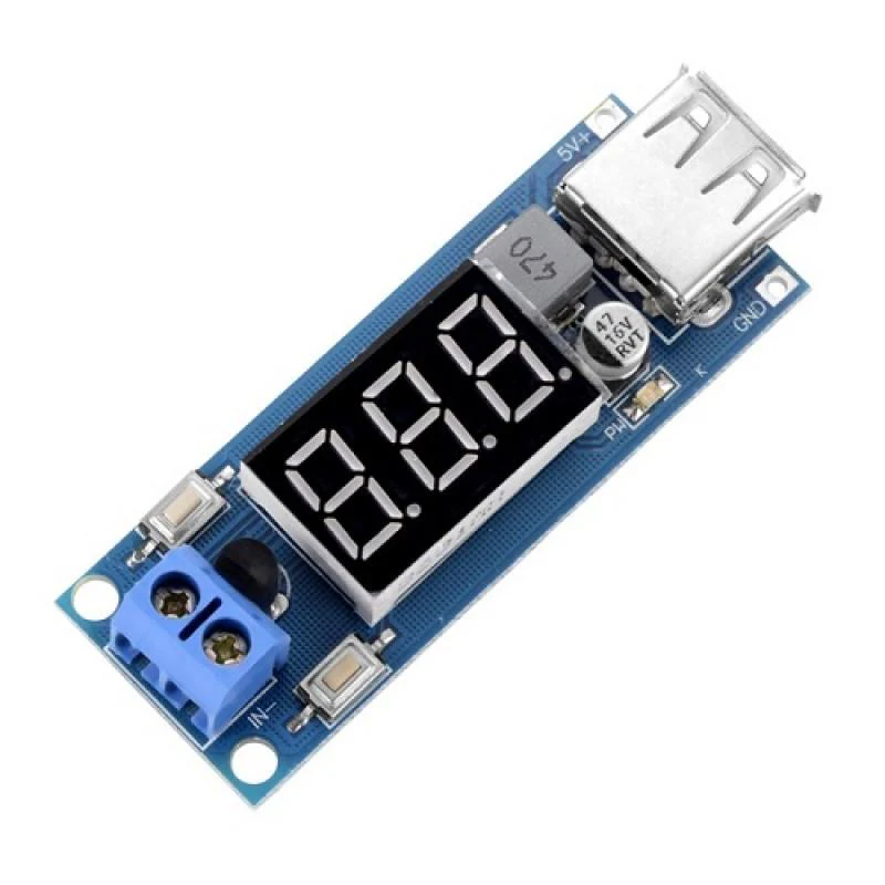The DC-DC 4.5-40V To 5V 2A USB Charger Step down Converter Voltmeter Module is made of electronic accessories, surface nickel plating (anti-rust), inner conductor: pure copper. It is long-lasting and durable. The module converts an input of 4.5-40V into a very stable 5V 2A output. The device features a USB port through which you can charge your phone. While charging your device please consider that the output of this device is regulated at 5V 2A.