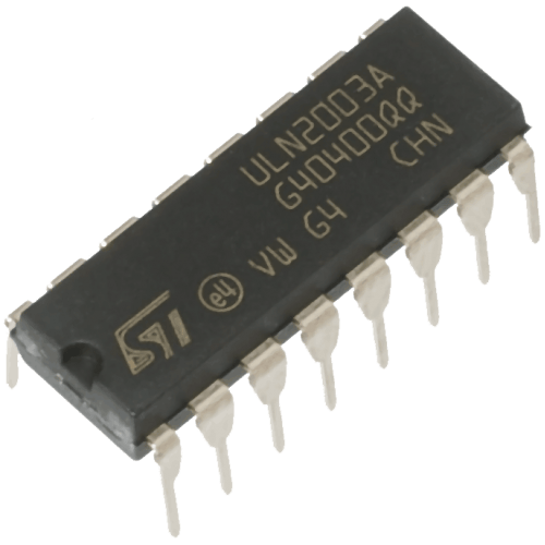 The ULN2003 is an array of seven NPN Darlington transistors capable of 500mA, 50V output. ULN2003 features are common-cathode flyback diodes for switching inductive loads. It can come in PDIP, SOIC, SOP or TSSOP packaging In the same family are ULN2002A, ULN2004A, as well as ULQ2003A and ULQ2004A, designed for different logic input levels.