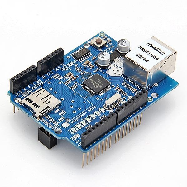 • This Arduino Ethernet Shield which is based on the Wiznet W5100 Ethernet Chip gives you an easy way to get your Arduino Online.